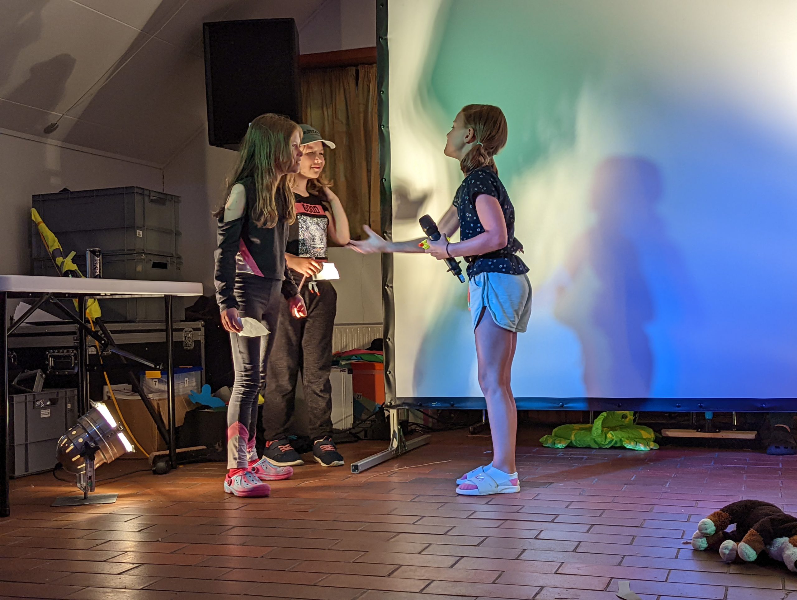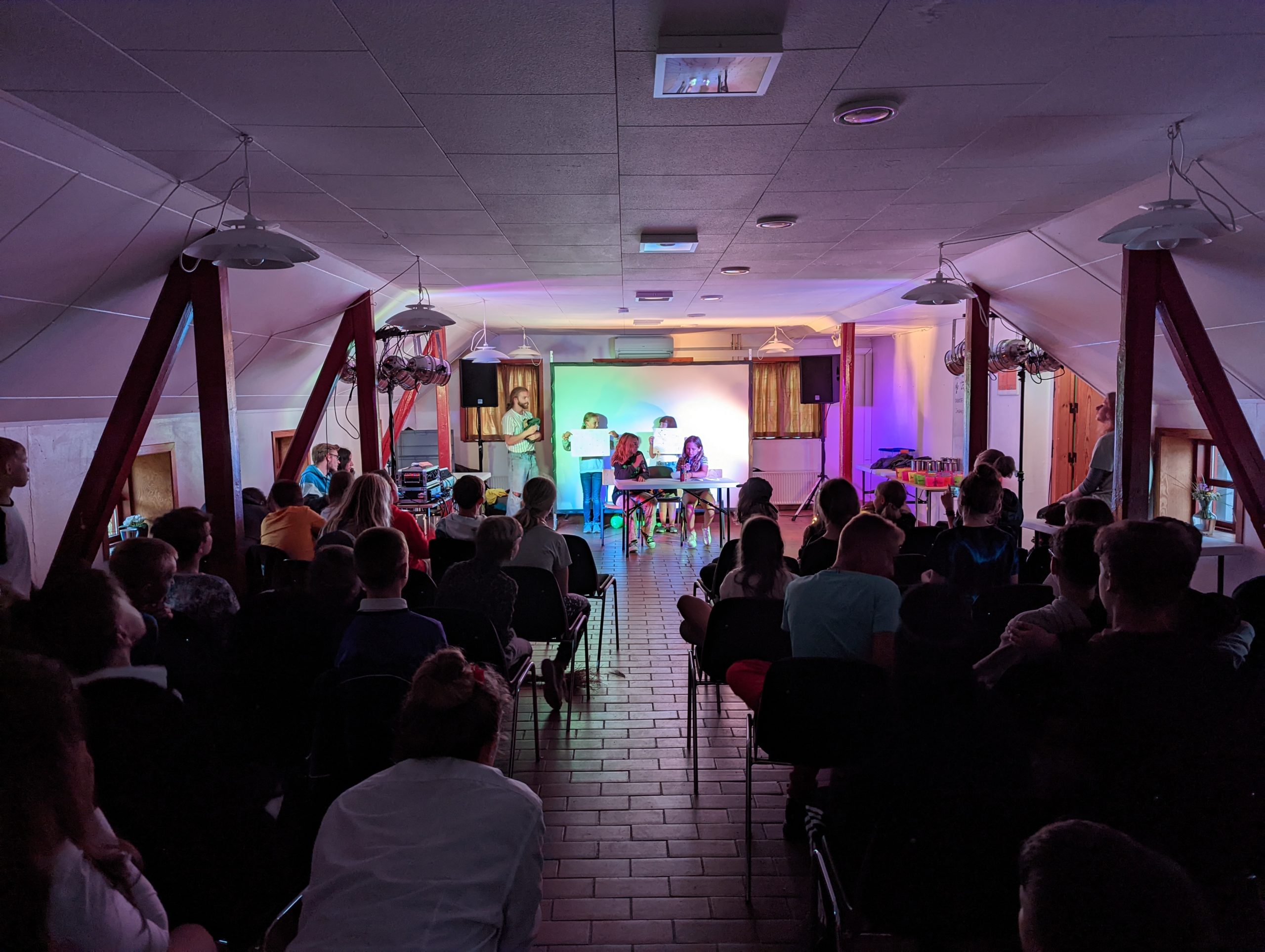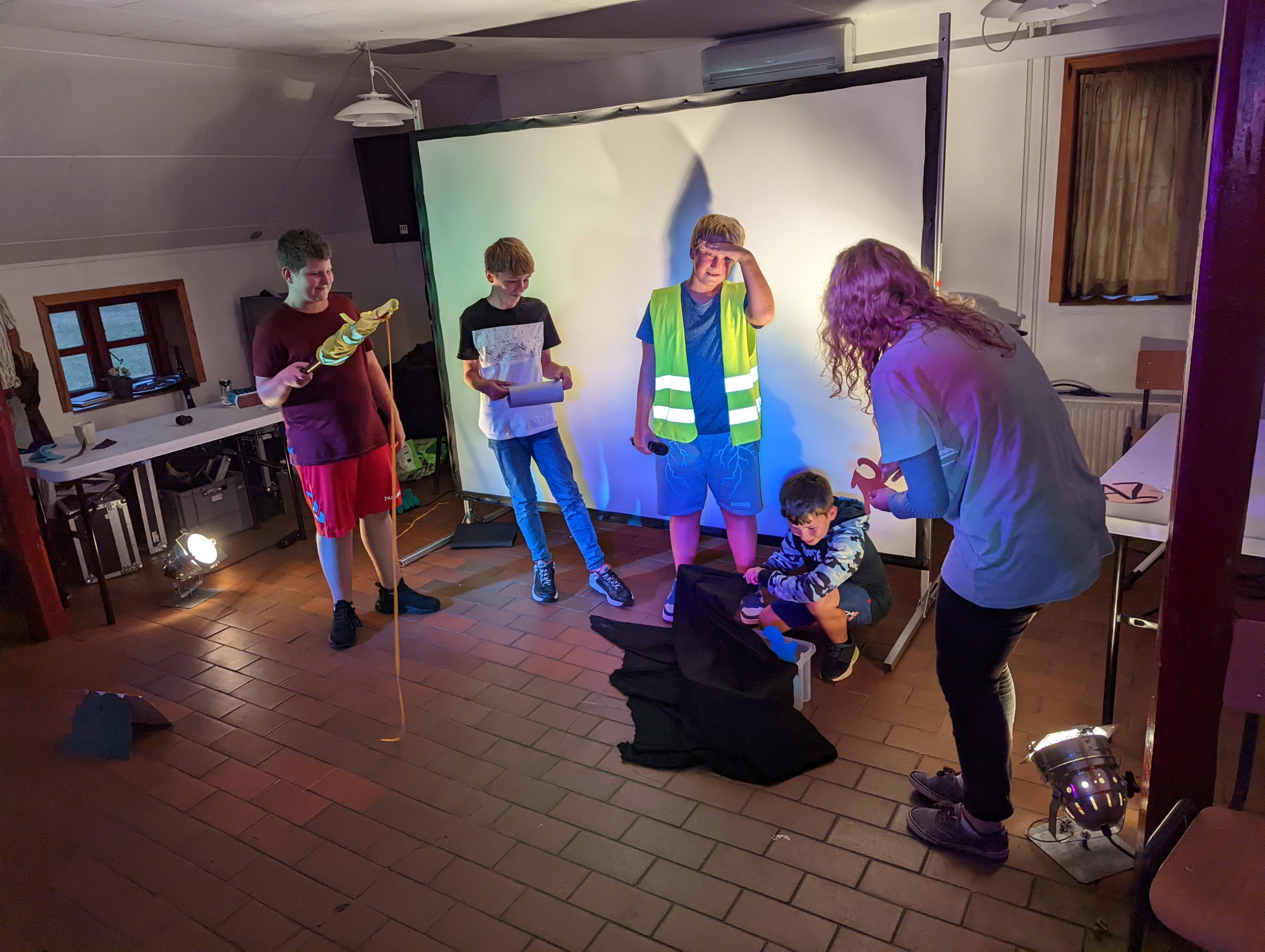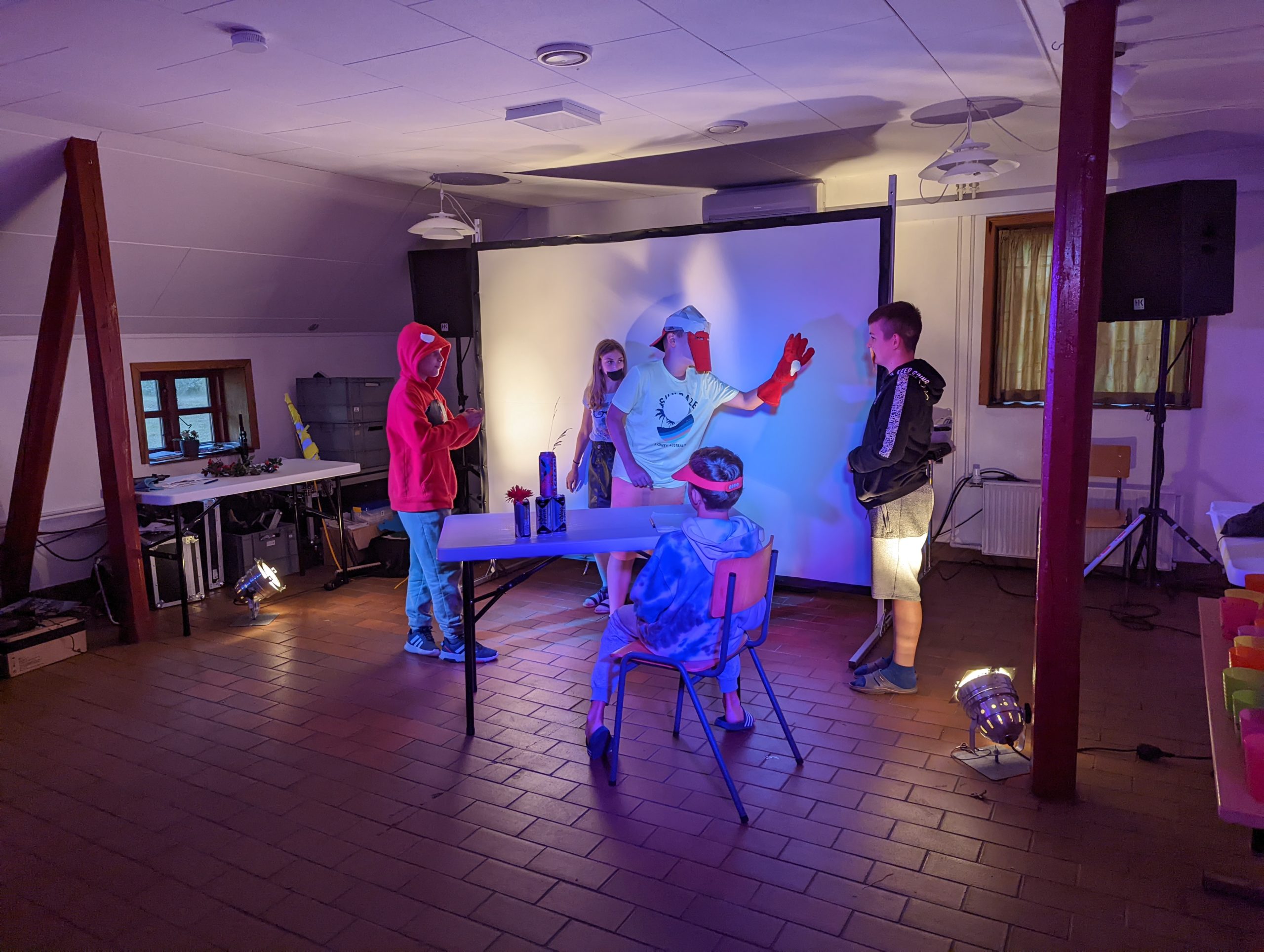 Das Nachmittagsprogramm bestand darin, dass jeder in 5-7er Gruppen ein Theaterstück vorbereiten sollen. Die Stücke waren frei in ihrem Inhalt. Nur das Genre war vorgegeben und 10 Begriffe, die jeder einbauen musste. Diese waren: „Zecke, Spinne, Susi, Fortnite, Fieber, Ass, Lien Liensvej, Worcestershiresauce, Crush und Datenschutz“